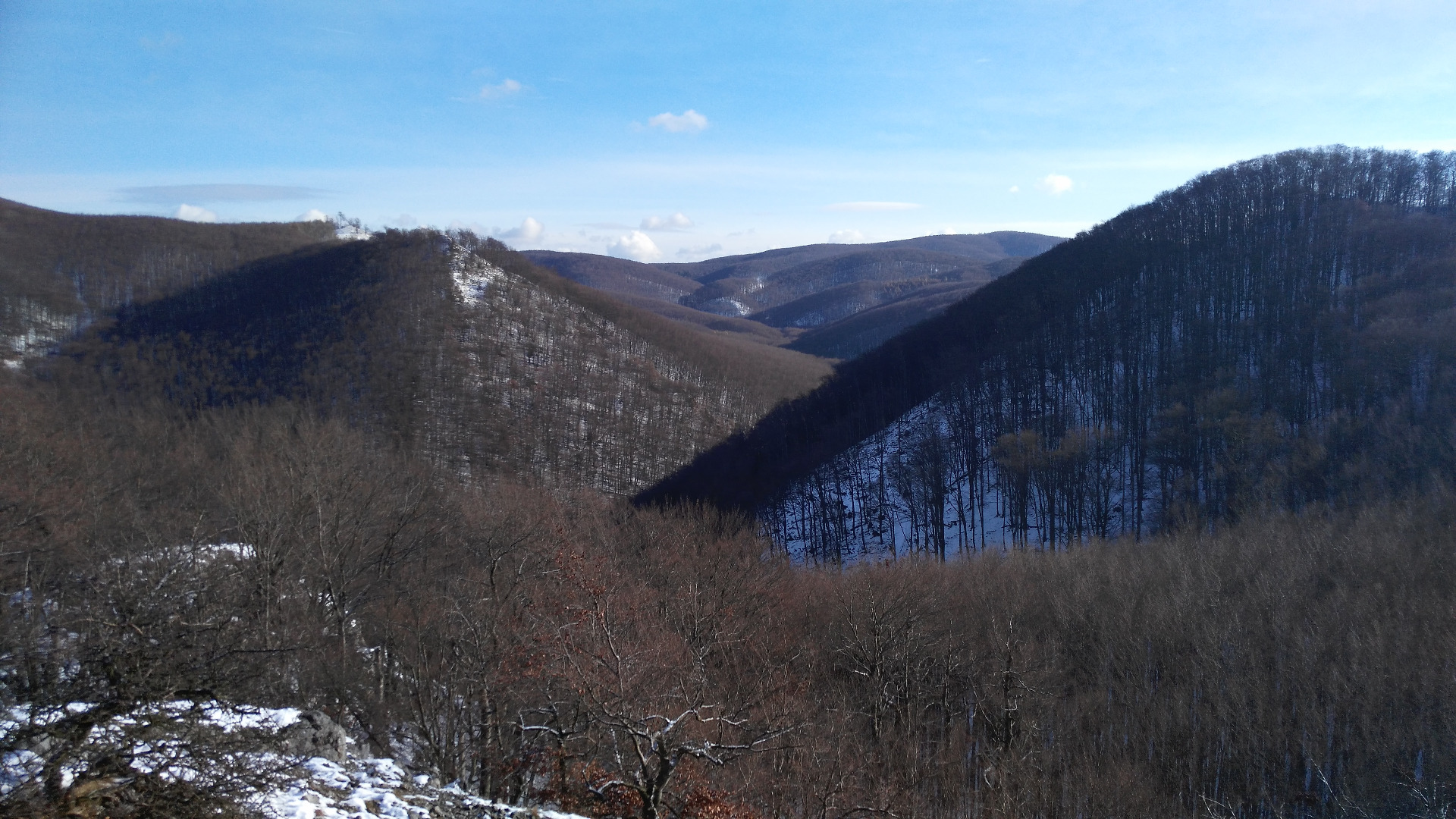 Dolinou schádzame k miestu, kde je západný hrebeň od kopca Vysoký Rajd smerom k Ostrému vrchu najnižší. Tadiaľto prejdeme z doliny potoka Vývrat do Modranskej doliny. Vhodné miesto sme našli pri veľkej lúke s poľovníckou chajdou. Stúpame hore na hrebeň, kde sa nám ukazuje rozľahlý kopec Mešťanková. Schádzame do doliny k potoku Malina. Odtiaľto začneme stúpať na Mešťankovú. Paľo to odhaduje na prísnych 300 výškových metrov.