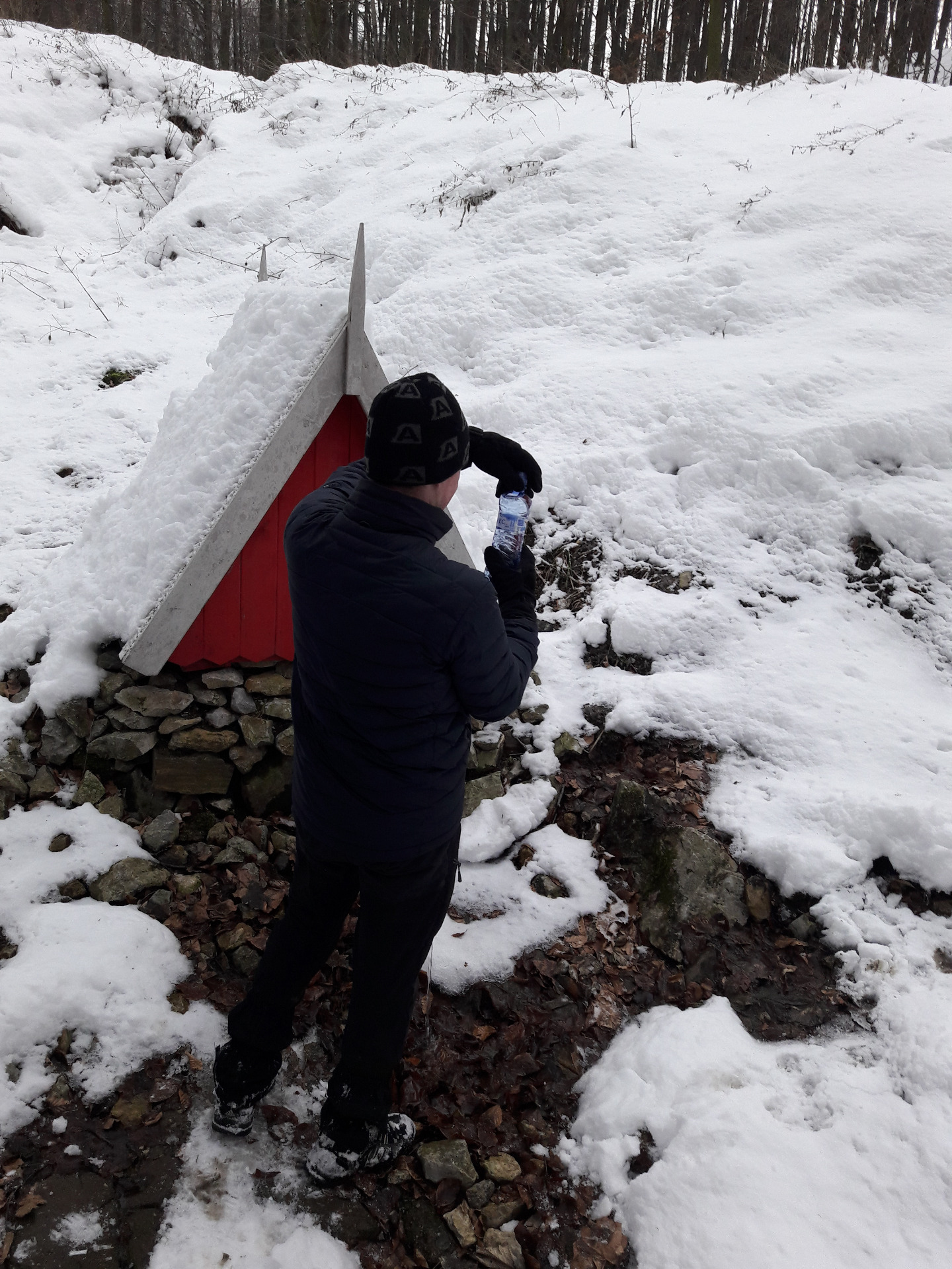 My zostupujeme po asfaltke k prameňu potoka Vývrat. Nachádza sa tu veľmi pekná a kvalitná studnička, ktorú vybudoval modranský turista a značkár Ružek. Za tento počin klobúčik dole. Vodu máme, už len nájsť tú chajdu.