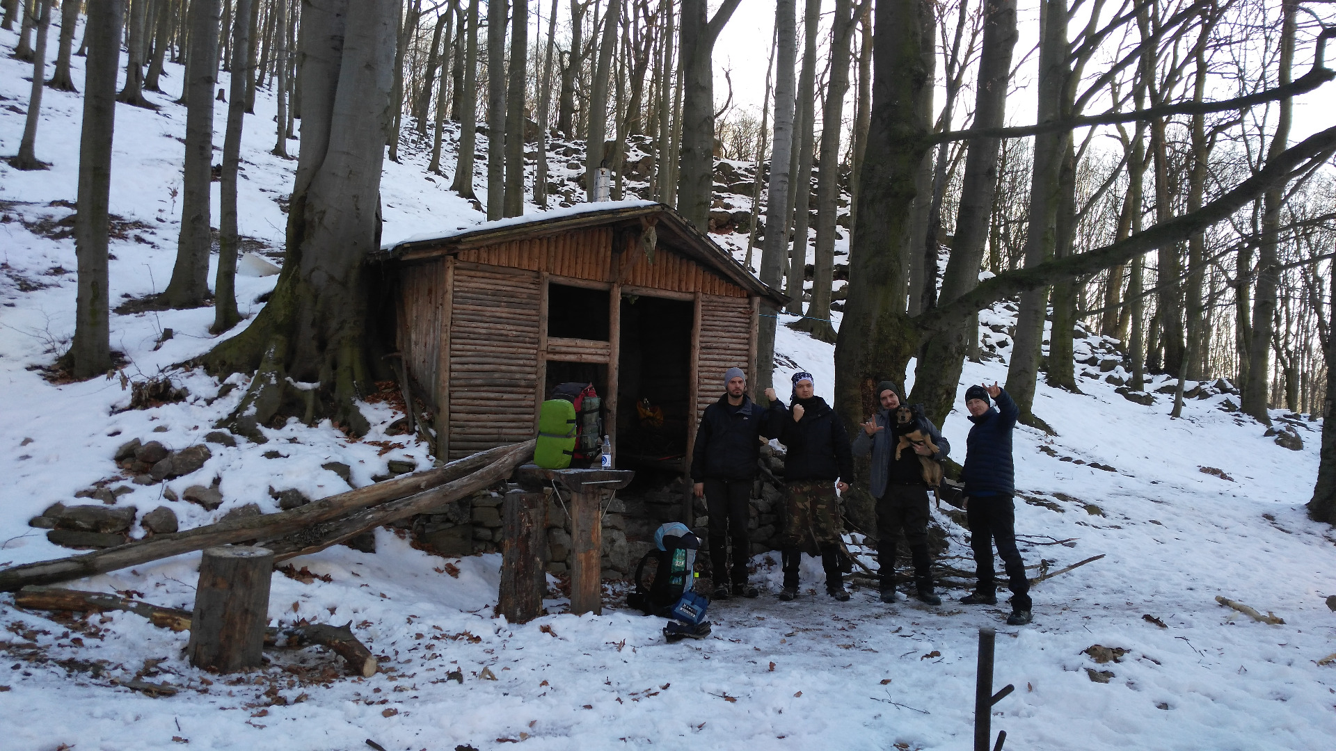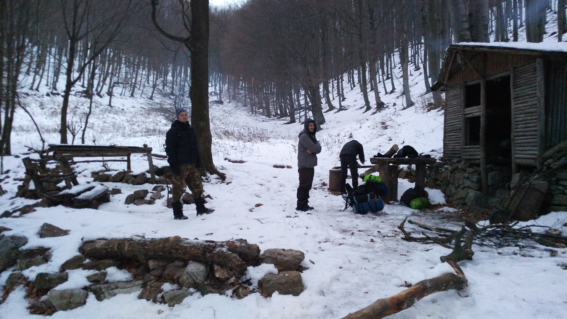 Útulnička je malá, no prekvapujúco luxusná. Ide o kamennú pivničku zapustenú do svahu a obohatenú o drevenú predsieň. Vo vnútri je vymurovaný kamenný krb, vonku sú opreté pílky na drevo, zima nám nebude. Zvláčame drevo, rozkladáme oheň. Sušíme veci, ohrievame nohy. Varíme čaj na Paľovom variči. Zo stola zmetieme mišačince a chystáme hostinu v podobe pečených klobás, cibule, cesnaku. Vonku fúka mrazivý víchor a tak sme radi, ako sme dnes dopadli. Paľo konštatuje: "To je vec ten oheň. Kto to vymyslel?" Chvíľu sa cítime ako zlatokopi na Klondajku. V predsieni začínajú vystrájať myši a Tibor im hádže kus chleba, aby v noci dali pokoj. Dona drichme v kúte a myši má na háku.